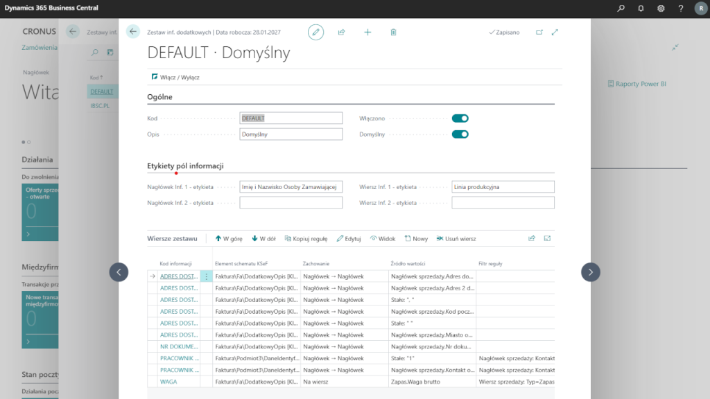The greatest advantage of the solution is its full configurability without any need for programming. Users can independently define the scope of data to be added to a document using simple and flexible settings. The application makes it possible to create default data sets as well as individual sets assigned to specific customers, separately for sales and service documents. This allows the content of an e-document to be adapted to different cooperation scenarios without any code changes.